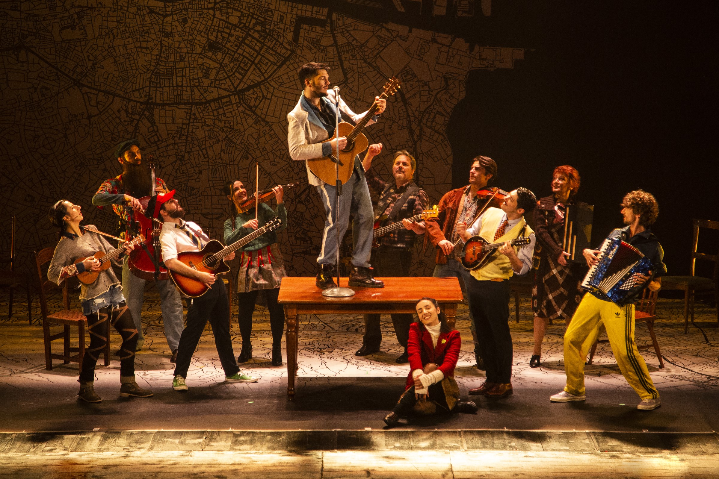 11 eccezionali interpreti cantano, recitano, danzano e suonano dal vivo una molteplicità di strumenti e danno vita a un racconto indimenticabile ambientato per le strade di Dublino, che coinvolge dalla prima nota e parla dell’inseguire le proprie scelte, del rifiuto di vivere nella paura e del potere che la musica ha di connetterci tutti.