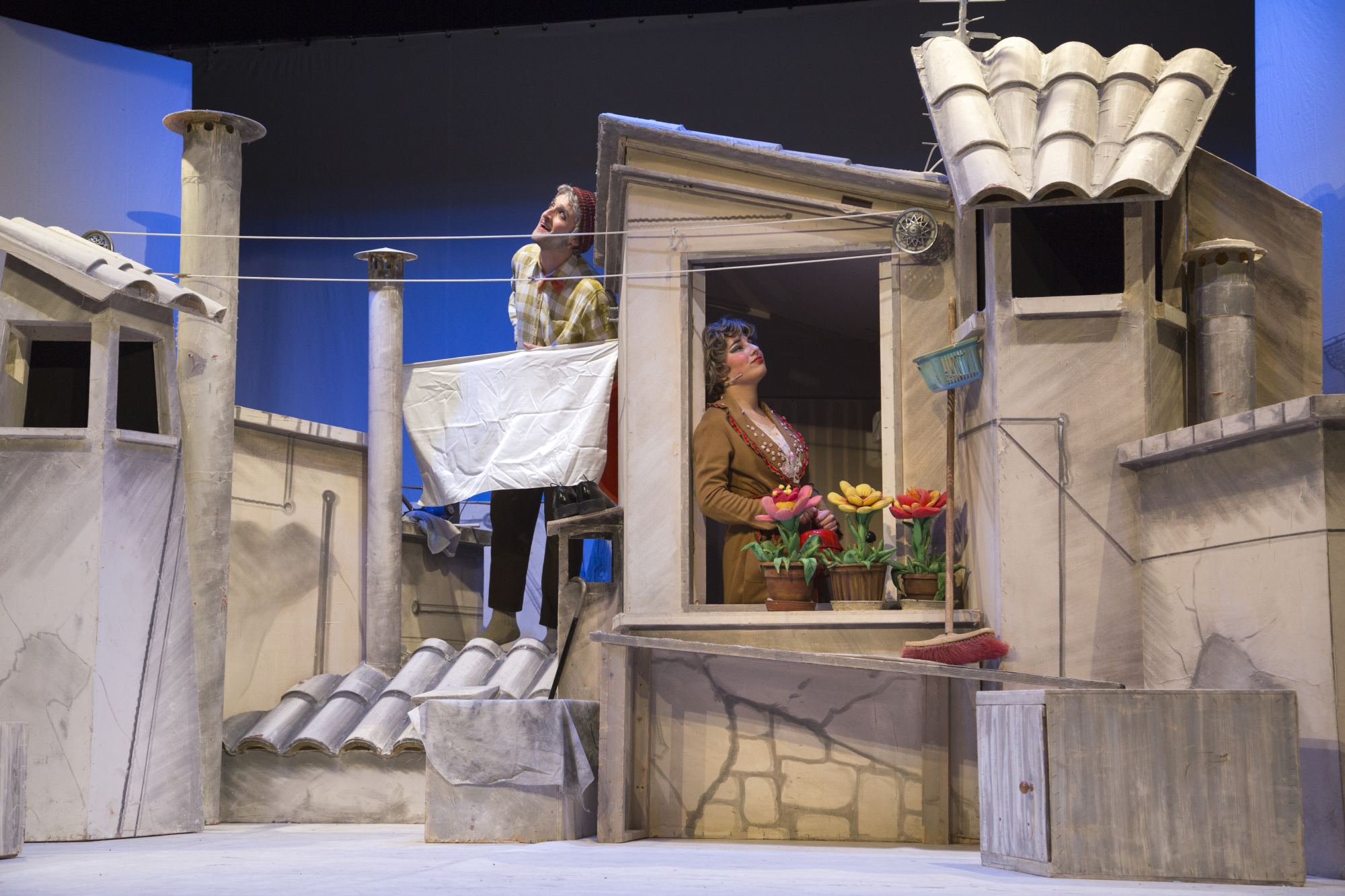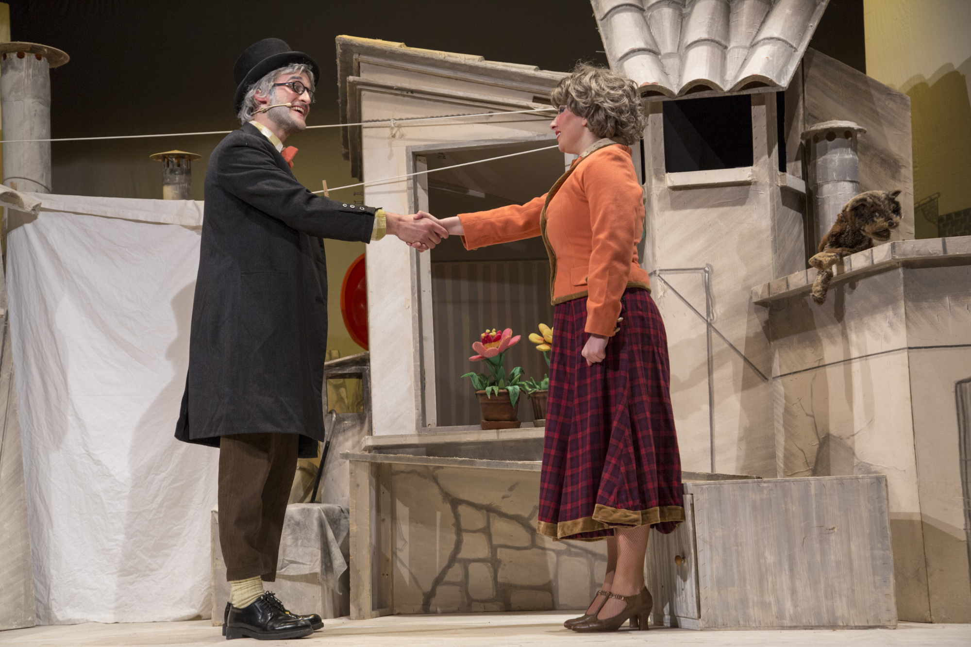 Un piccolo terrazzo nascosto fra i tetti è lo scenario perfetto per far riflettere i piccoli spettatori sul tema del riciclo e dell’amore con i capelli bianchi. Su questo terrazzo vive Federico, un barbone che un tempo faceva l’attore e che trova qui la sua serenità in una singolare organizzazione quotidiana, in compagnia delle sue letture e dei gatti Romeo e Dolores, legittimi inquilini dei tetti. Dalla finestra di un abbaino si scopre un’altra esistenza: è la signorina Wanda, impiegata in pensione alla quale non manca proprio nulla, al punto tale che con i suoi rifiuti Federico ci vive. Infatti, ogni giorno egli trova nel suo sacco dell’immondizia qualcosa di buono per sé. Le loro vite scorrono tranquillamente fino al giorno in cui si rompe l’antenna della televisione e allora… In un susseguirsi di canzoni, danze e giochi di magia si snoda uno spettacolo pieno di emozioni che incanterà grandi e piccini.
