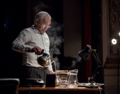 Gabriela Eleonori e Saverio Marconi, dopo il grande successo di Variazioni Enigmatiche, tornano a confrontarsi con un testo di Schmitt, e questa volta lo fanno con una narrazione intima, che parla agli spettatori guardandoli negli occhi mentre si compie l’affascinante rito tradizionale del tè turco: un procedimento lento, un sapore antico e familiare, durante il quale si snoda, emozionante, la storia.