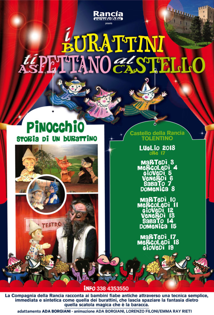Il castello della Rancia di Tolentino torna ad ospitare il magico mondo dei burattini, per far rivivere una favola senza tempo che da sempre appassiona generazioni di grandi e piccini: Pinocchio – storia di un burattino.