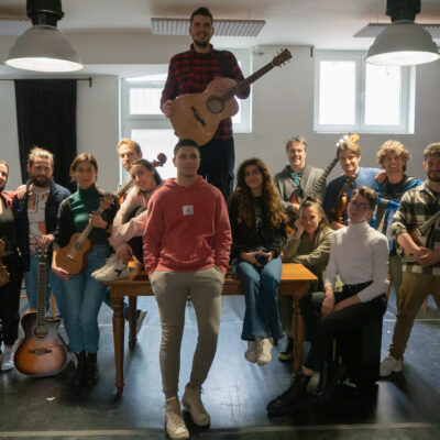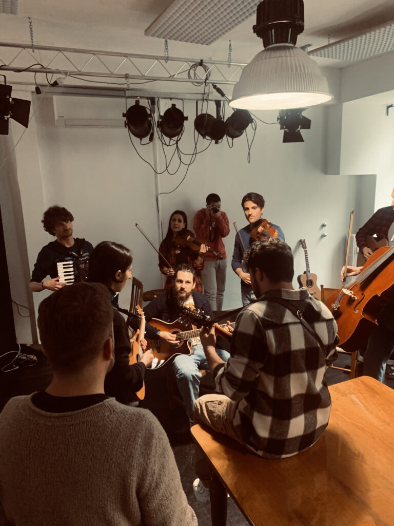 - Gli allievi in sala prove con il cast di “Una volta nella vita (Once)” [aprile 2022]