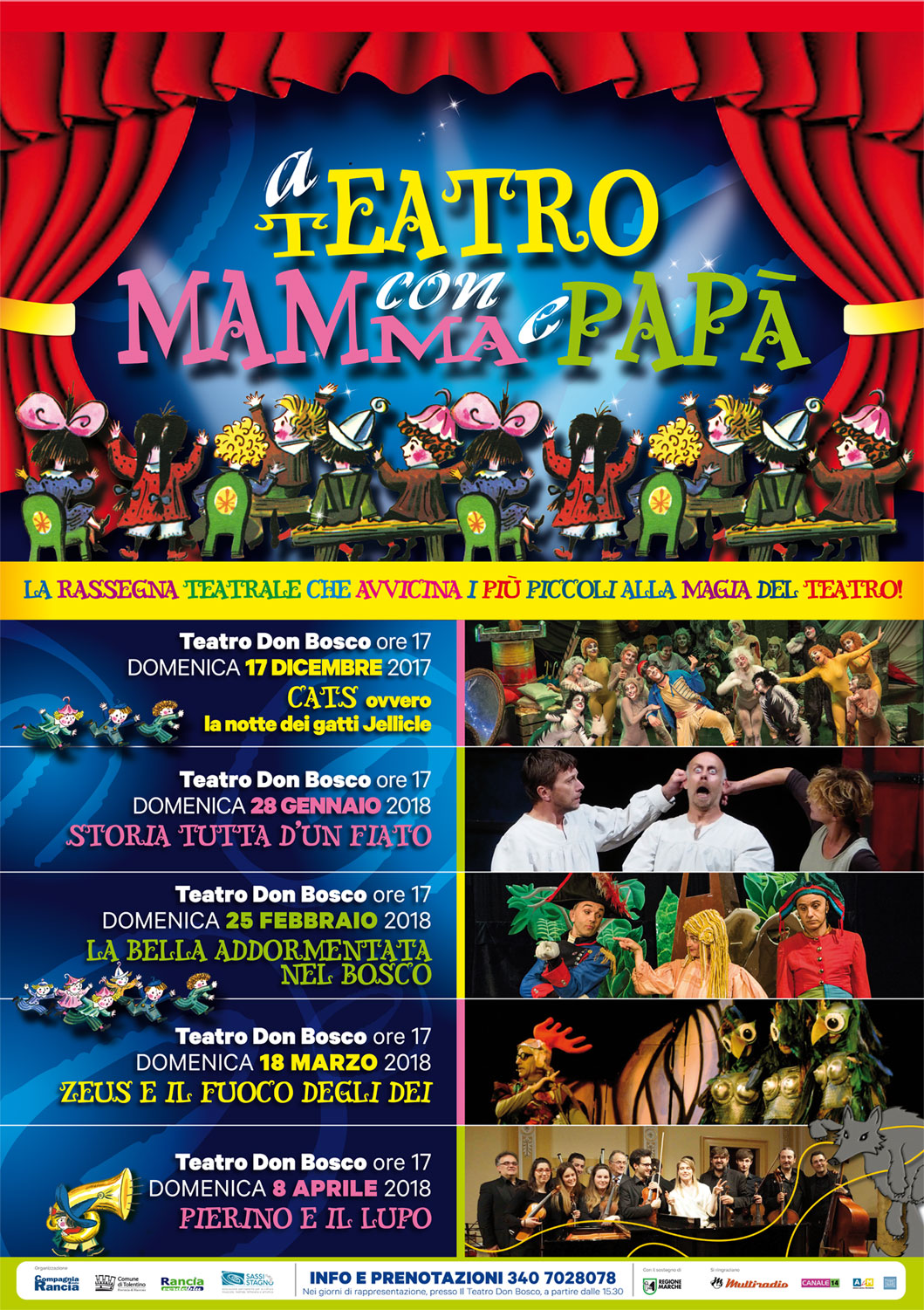 A dicembre, riparte la rassegna A TEATRO CON MAMMA E PAPÀ. Il calendario 2017/2018 spazia dal musical alla favola musicale e al teatro d’attore, con spettacoli di alta qualità, con l’unico scopo di emozionare il pubblico di piccoli da 3 a 105 anni!