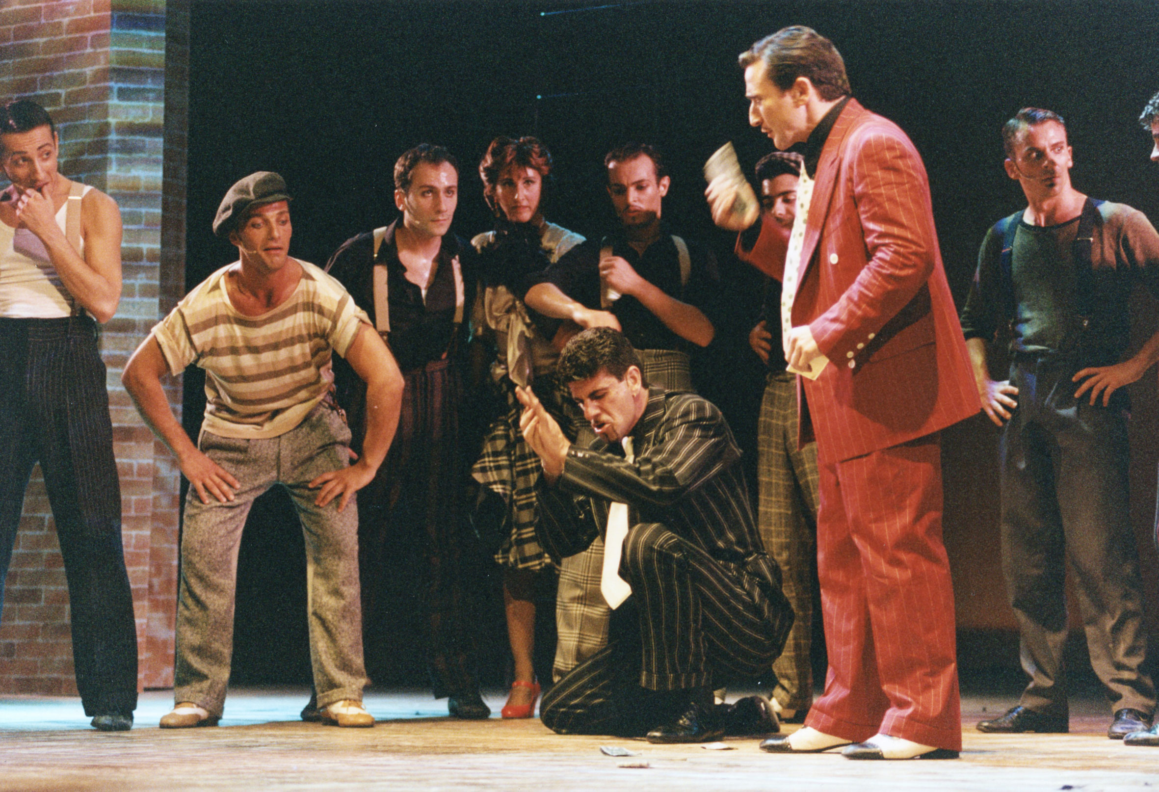 Bulli e Pupe è uno spettacolo brillante ricco di humor, ambientato nel mondo delle scommesse e dei piccoli boss di quartiere di New York. Negli Stati Uniti il musical ha vinto il NY Drama Critics Award e 5 Tony Award. A Londra ha debuttato nel 1953 e numerose altre versioni sono state portate in palcoscenico in tutto il mondo. Nel musical si ritrova tutto lo spirito di Broadway con i pittoreschi personaggi tipici della 42^ strada, diventati leggende: Sarah Brown, l’onesta e rigida soldatessa dell’Esercito della Salvezza, che vorrebbe riportare sulla retta via i frequentatori di Time Square; Sky Masterson, il bugiardo giocatore d’azzardo che la corteggia per scommessa e finisce per innamorarsene; Adelaide, la ballerina di night-club perennemente raffreddata eterna fidanzata di Nathan Detroit, giocatore d’azzardo sempre disperatamente alla ricerca di una scommessa e di un luogo per organizzare una bisca. Una storia dove, alla fine tutto funziona, grazie all’intreccio perfetto di Abe Burrows e Jo Swerling, i due autori del divertente libretto, e grazie alle luminose e immortali musiche di Frank Loesser, che ci portano dal cuore di Times Square ai bar dell’Avana ed ancora nei sotterranei di New York City. Comico e romantico, Bulli & Pupe è lo spettacolo ideale per un pubblico di qualsiasi età. La versione italiana, diretta e coreografata da Fabrizio Angelini con la supervisione di Saverio Marconi, porta in scena un grande cast di 24 persone, con fantastici balletti, coloratissimi costumi ed originali scenografie.