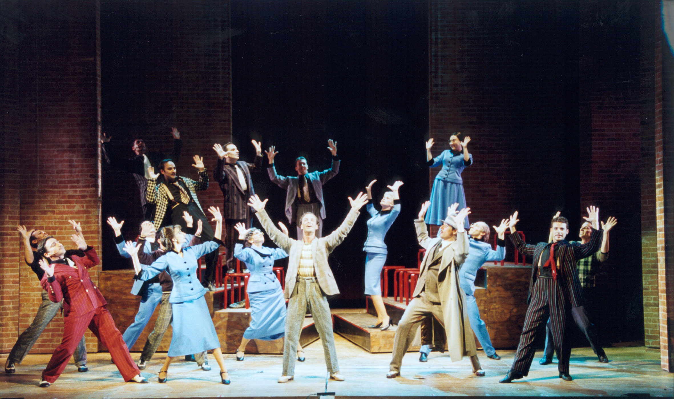 Per il resto gli ingredienti c’erano tutti: personaggi coloriti, intreccio della trama, musiche orecchiabili e accattivanti, numeri coreografici da costruire di probabile effetto … . Abbiamo dato però spazio anche all’analisi dei personaggi, soffermandoci a lungo a capire il perché di certi comportamenti, andando spesso oltre il testo, ricercando, ricreando (o dove non possibile inventando) la loro storia passata e presente; un percorso che ha coinvolto tutti gli interpreti inserendoli ancora di più nella vicenda, e in generale nel lavoro, contribuendo forse ad aumentare lo spessore di uno spettacolo che tutto sommato potrebbe tendere al futile.