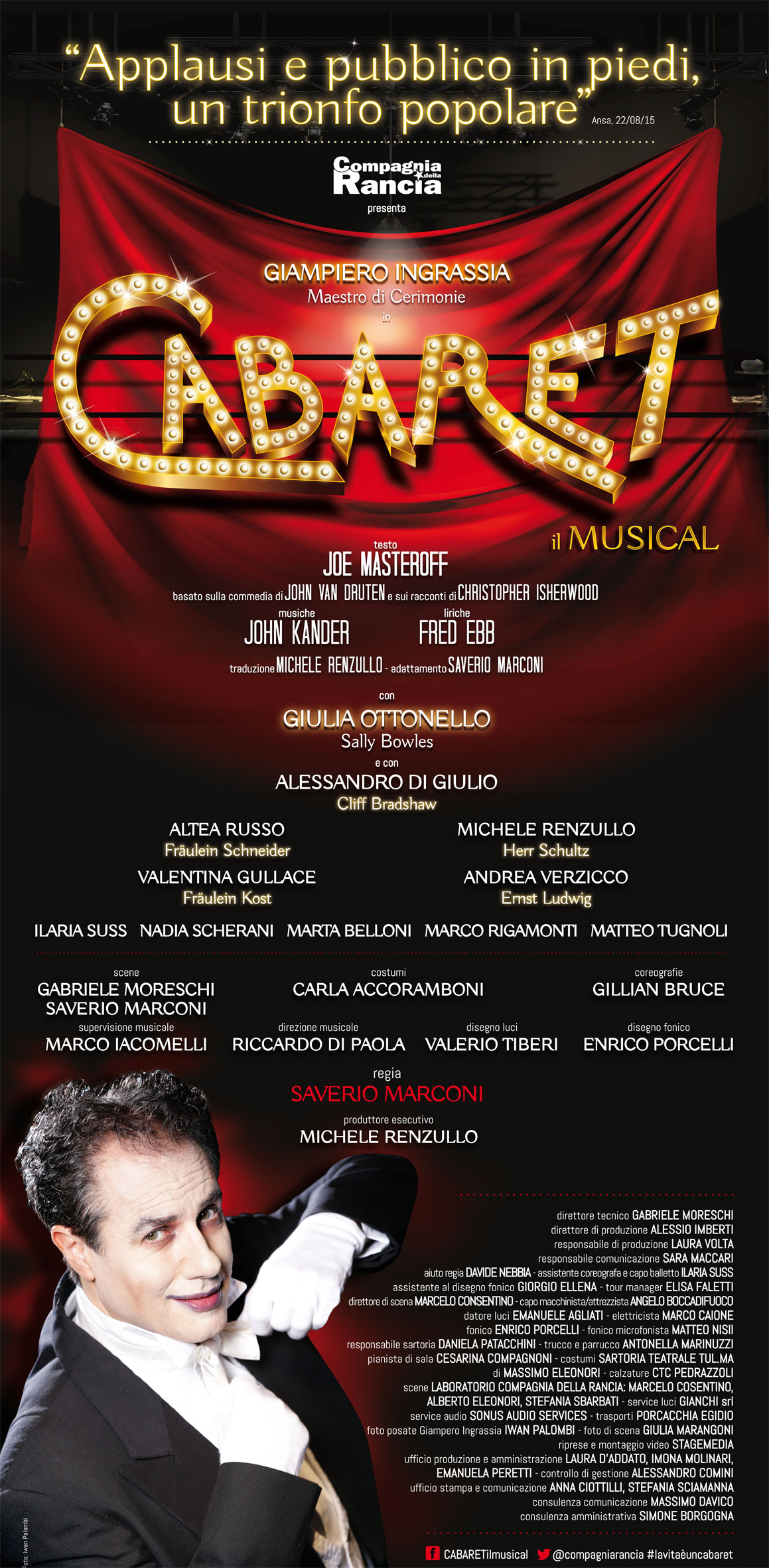 La stagione 2015/2016 ha visto la Compagnia della Rancia impegnata con un nuovo allestimento di CABARET, spettacolo molto caro a Marconi, che mancava dalla circuitazione nei teatri da oltre vent’anni (l’edizione 2006/2007 aveva toccato infatti solo Milano e Roma) e che ha debuttato, con oltre 10 minuti di applausi e unanime consenso di pubblico e critica, come spettacolo inaugurale della 29ma edizione del Todi Festival.