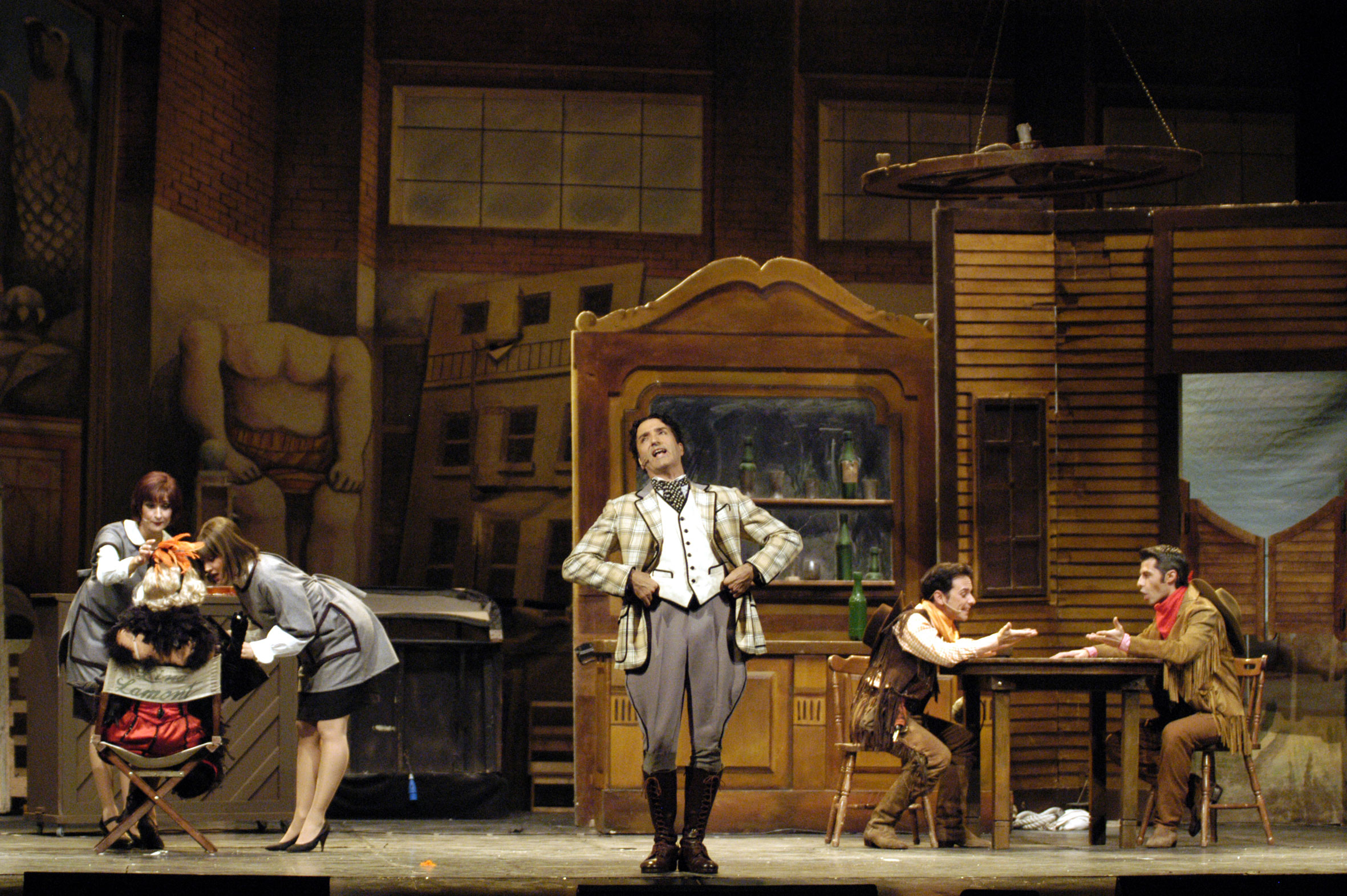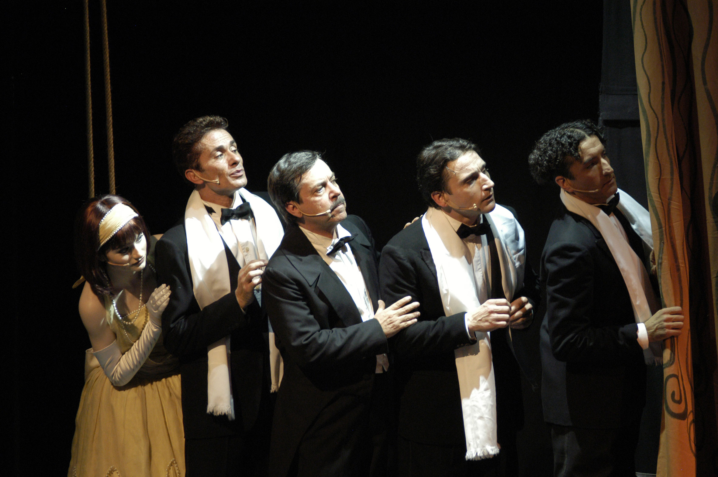 1.000 litri d’acqua, 12 pompe, 150 metri di tubazioni, boilers, decine di vasche stagne e inoltre 120 costumi (per sei dei quali sono occorse più di 300.000 pietre di cristallo), scenografie per ricreare oltre 20 ambienti diversi, 32.000 metri di pellicola cinematografica, videoproiettori e tanti tecnici che, durante lo spettacolo, non si fermano mai. È stato divertente sperimentare gli effetti per veder nascere la pioggia, scegliere le luci che avrebbero potuto illuminarla meglio, capire come poter formare le pozzanghere dentro cui Raffaele Paganini avrebbe ballato il più celebre dei tip-tap e far tornare tutto perfettamente asciutto nella scena successiva. La realizzazione dei filmati che fanno parte dello spettacolo, poi, merita un capitolo a parte: è stato come produrre dei veri e propri film che hanno richiesto, tra set e post-produzione, due settimane di lavorazione, impegnando una troupe di 12 persone con direttore della fotografia, operatore, direttore di produzione, truccatori, elettricisti, macchinisti, fonici, montatori e lo stesso regista. La pellicola 16mm usata doveva essere in grado di ricreare perfettamente la fotografia tipica dei film anni ’20.