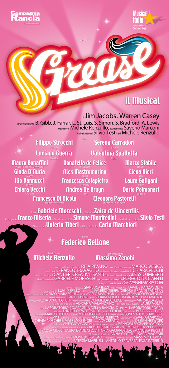 “Ricordo ancora nitidamente la prima volta che vidi il musical Grease a teatro… Milano, Teatro Nuovo, 1997. Lorella Cuccarini nel ruolo di Sandy, il primo sabato pomeriggio dopo il debutto di quello che sarebbe diventato il primo long running show italiano. Avevo appena 16 anni e rimasi così folgorato che rividi lo spettacolo altre 8 volte nel corso dello stesso mese. Lo show era una bomba ad orologeria che si innescava con precisione ogni sera per esplodere con così tanta energia da mandare il pubblico letteralmente in visibilio. Grease, oltre a portare a teatro i giovani e persone che a teatro non erano mai state, penso abbia decretato definitivamente la mia decisione di intraprendere una carriera nel teatro musicale. Così, dopo nove anni di repliche, oltre 1.300.000 spettatori, quasi 100 interpreti che si sono avvicendati nel corso delle recite, mi ritrovo a dirigere la nuova edizione dello spettacolo. Grease, che nacque nel 1971 come musical sperimentale, è in realtà un pretesto per evocare nostalgicamente la magia degli anni ’50 e la loro inarrestabile energia. Così la nuova edizione vuole essere un recupero di quella carica esplosiva e si fa forte di una nuova scenografia dal grande impatto visivo, grazie a un collage dai colori vivaci di pubblicità anni ’50, che proprio oggi riportano immediatamente a quell’epoca, e a un cast di veri ventenni, preparatissimi nelle discipline richieste dal musical, che invaderanno con il loro entusiasmo tutto il teatro. Mi auguro che questa nuova versione dello spettacolo possa continuare a coinvolgere e a elettrizzare il pubblico per altri 10 anni.”