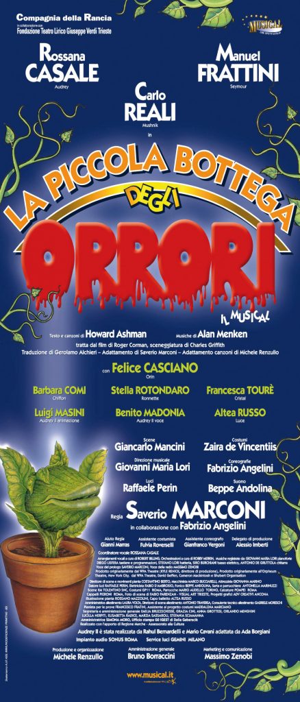 La Piccola bottega degli orrori, è il musical nato da Howard Ashman e Alan Menken, che prende spunto da un film in bianco e nero di Roger Corman del 1960, con un esordiente Jack Nicholson. Il grande successo dello show, presentato in origine da Cameron Mackintosh, “off-Broadway”, ha generato 15 versioni in diverse lingue in tutto il mondo.