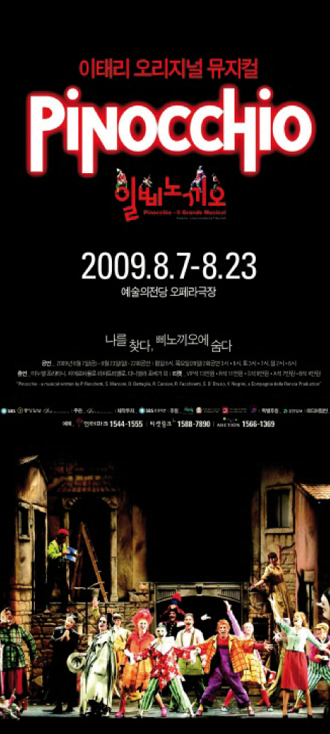 Lo spettacolo nell’agosto 2009 è stato rappresentato in lingua originale all’Opera Theatre dell’Arts Center di Seoul: uno dei simboli italiani più conosciuti nel mondo è stato applaudito anche dal pubblico coreano, dopo che il regista Saverio Marconi ha preparato una versione del musical adattata a una platea internazionale.