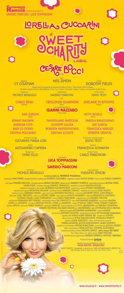 Il travolgente ottimismo e la dolce ingenuità della protagonista Charity hanno convinto Lorella Cuccarini a tornare in teatro, dopo il grande successo di Grease, con una storia divertente, dominata dal ritmo elettrizzante della New York degli anni ‘60.